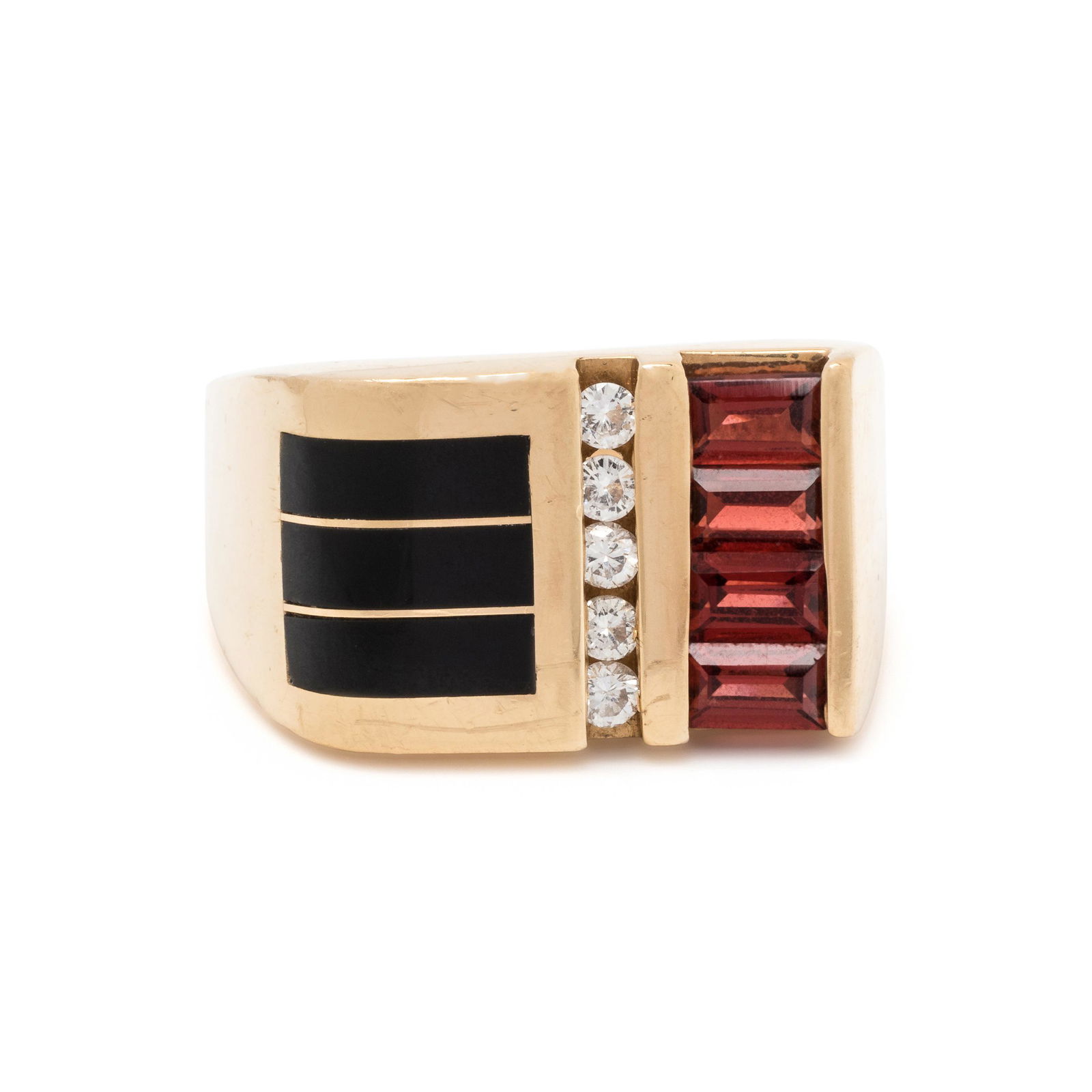ONYX, DIAMOND AND GARNET RING
