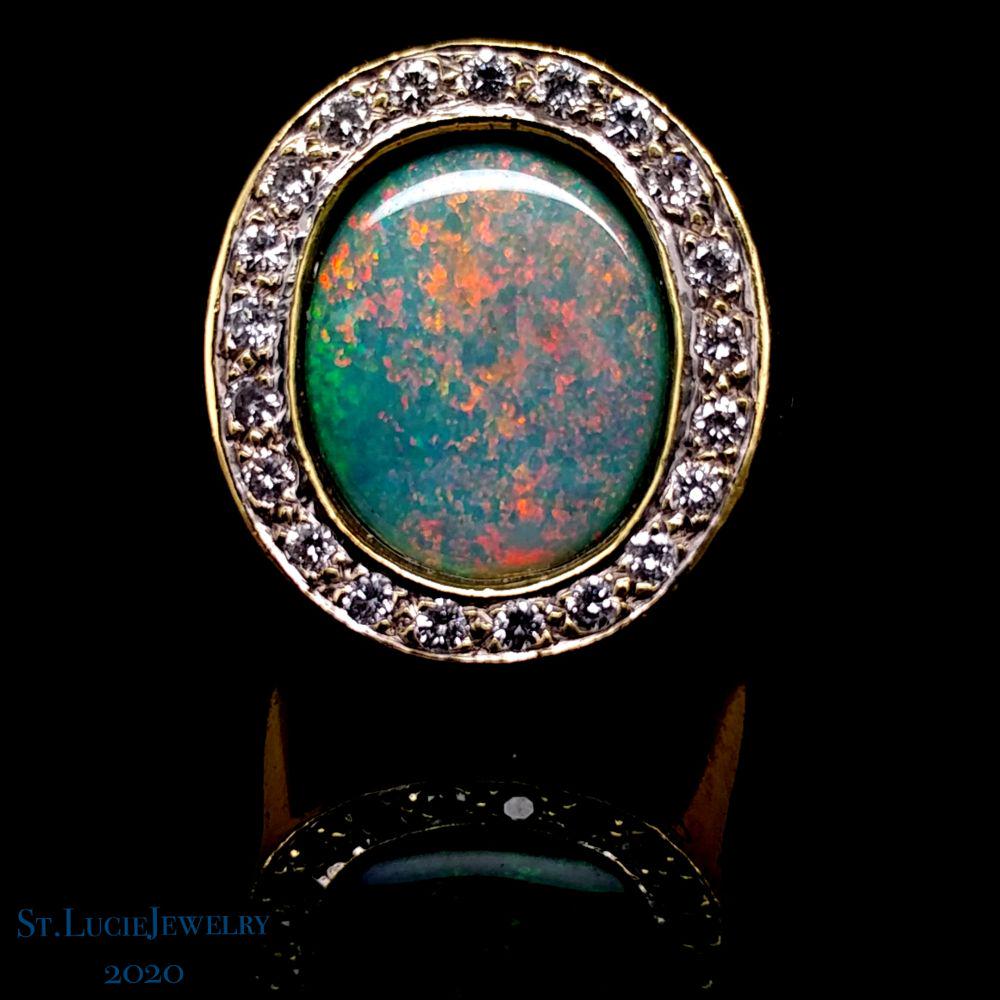 14k Gold 3.9 Ct Natural Opal & Diamond Ring
