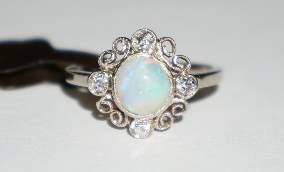 Platinum diamond opal ring