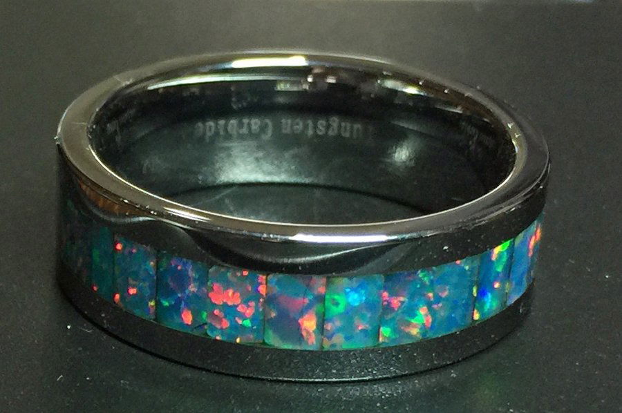 Opal and Tungsten Men's Ring