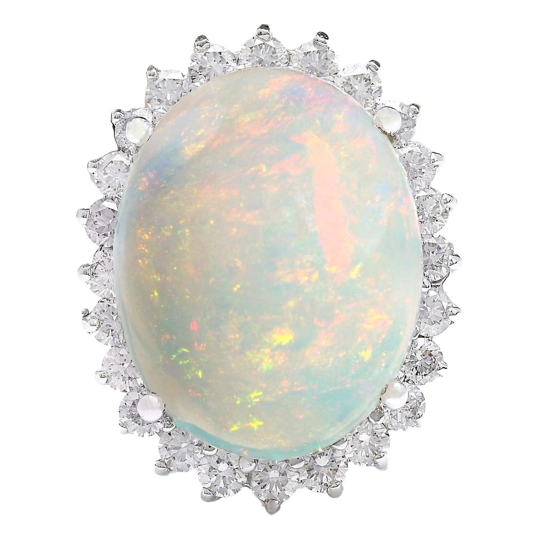 14k White Gold 13.00ct Opal 1.80ct Diamond Ring