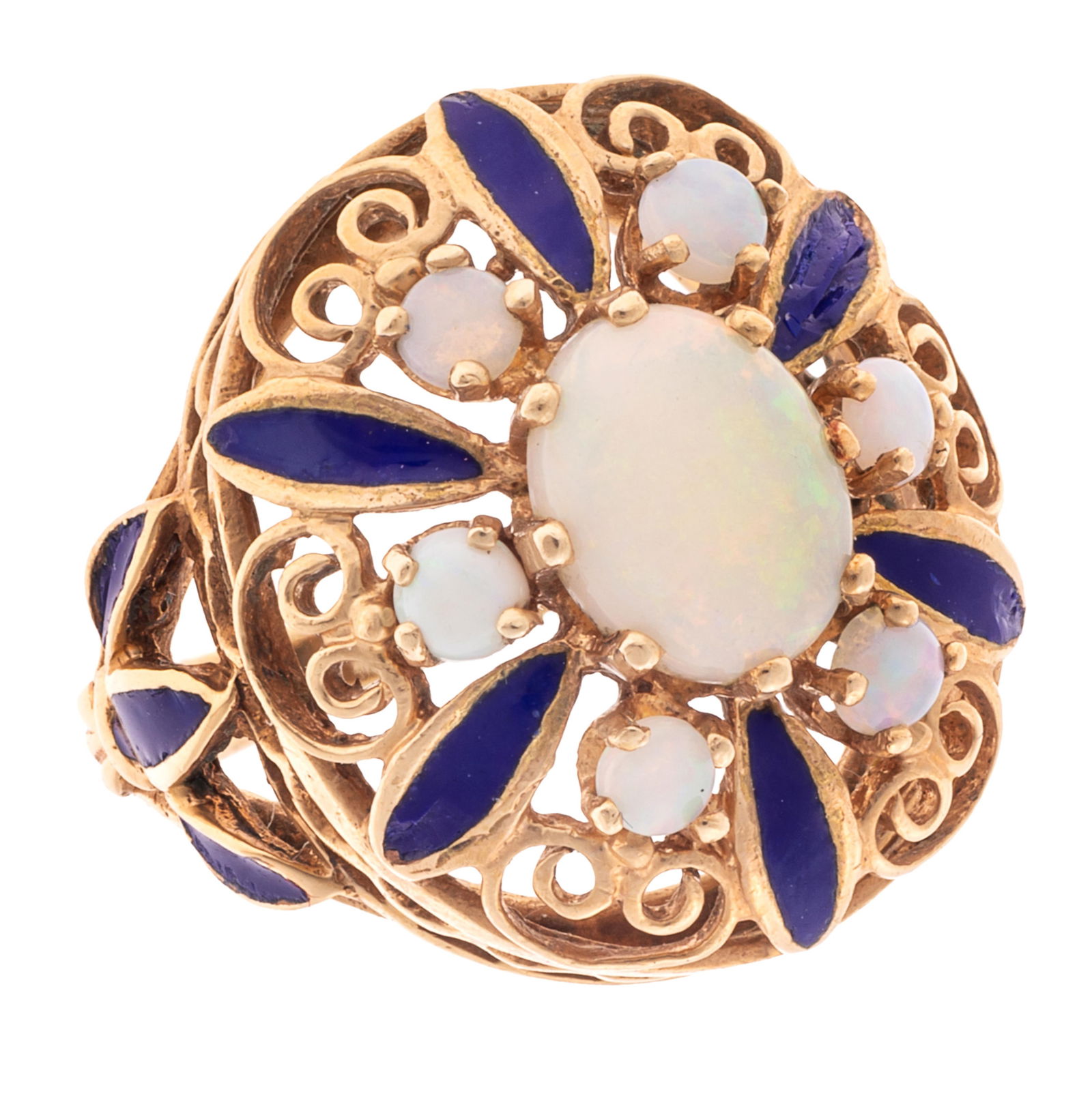 Opal, Enamel, 14k Yellow Gold Ring