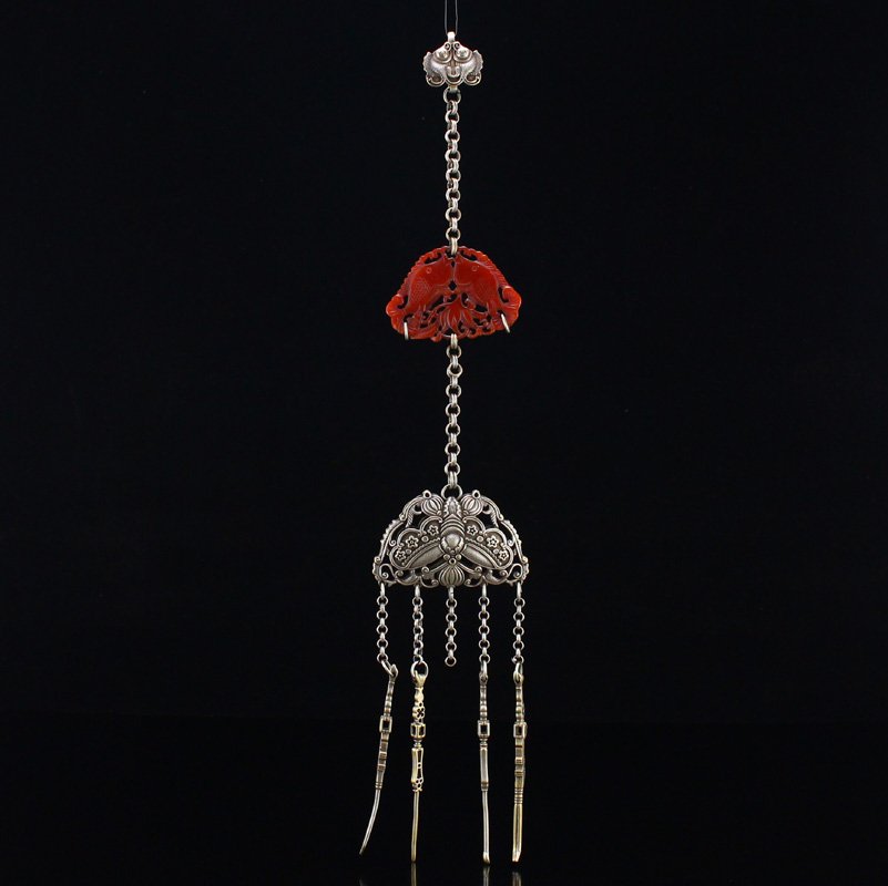 Openwork Vintage Silver Inlay Red Agate Pendant