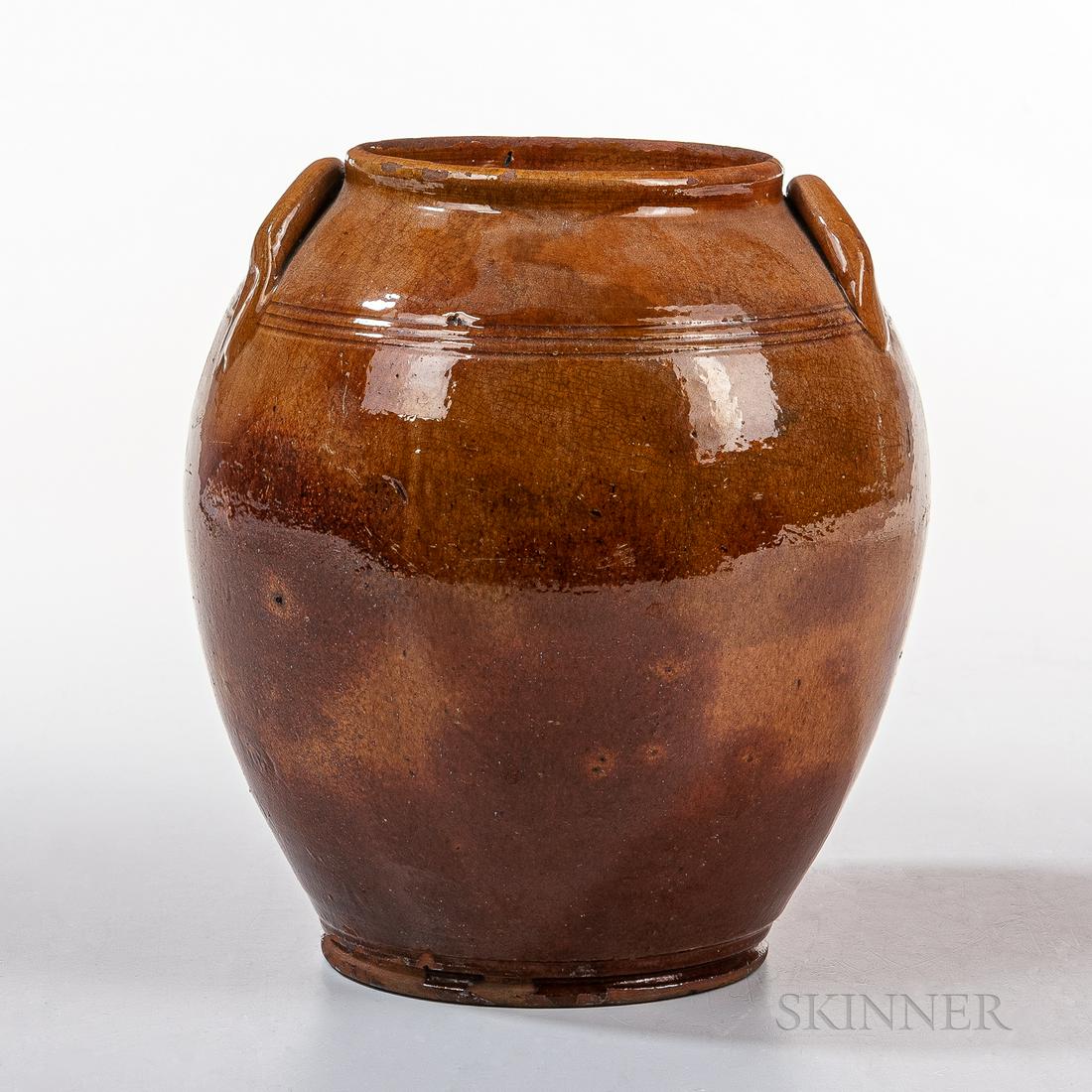 Orange- and Red-glazed Redware Jar, Massachusetts, c.