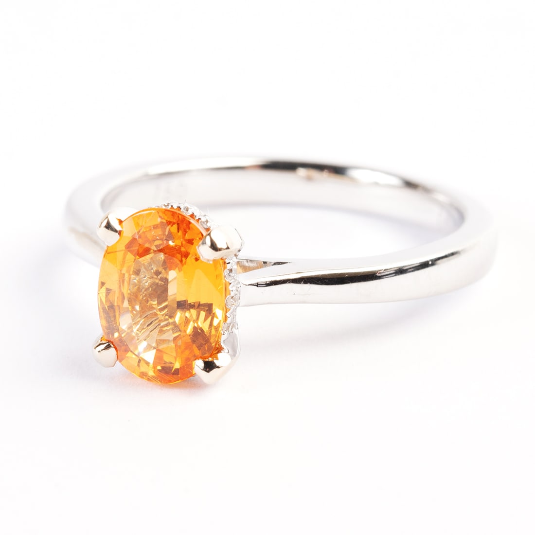 Orange Garnet, Diamond, 18k White Gold Ring.