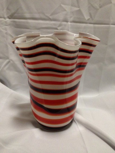Vintage Orange/Amethyst Swirl Ruffled Glass Vase