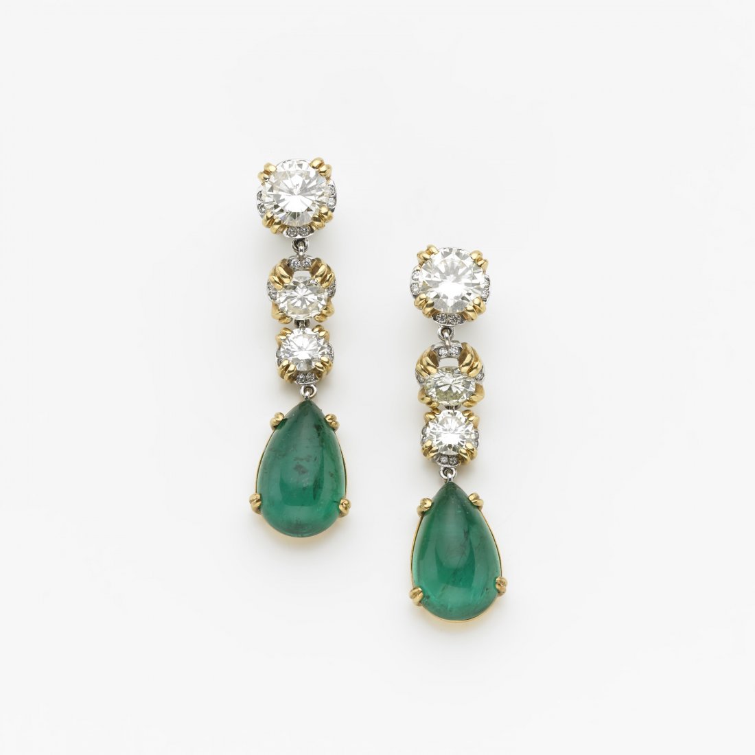 Orecchini pendenti in oro bianco e giallo con sei