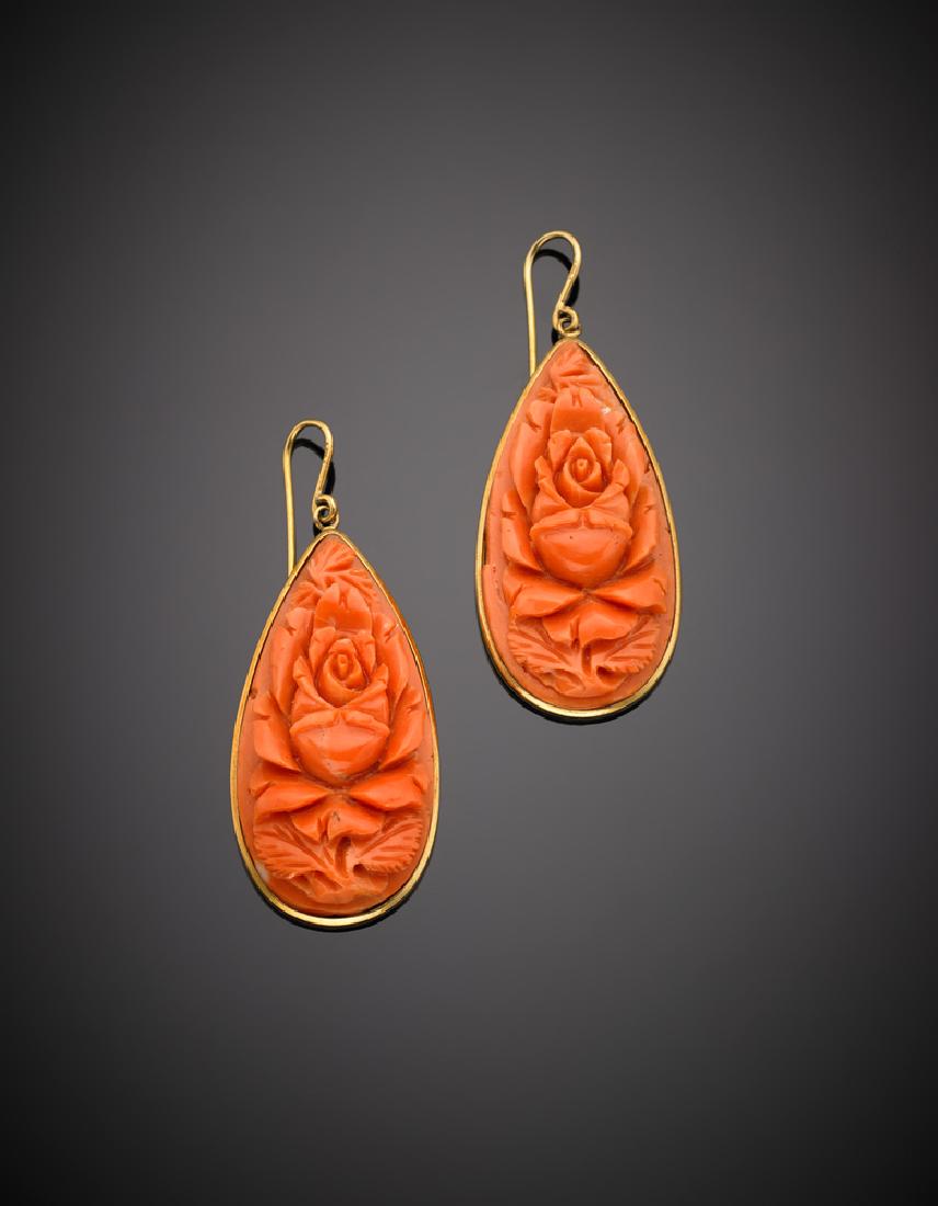 Orecchini pendenti in oro giallo e corallo a goccia