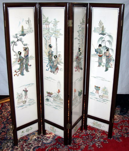 ORIENTAL 4 PANEL DIVIDER SCREEN, LATE 20TH C.