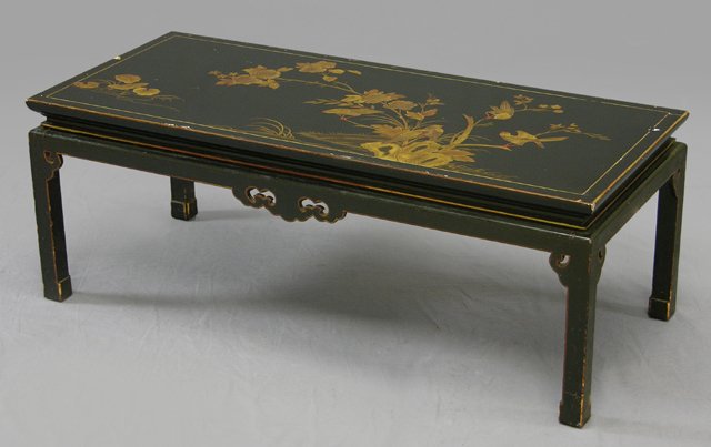 Oriental Black Lacquer Coffee Table, 20th c., the top