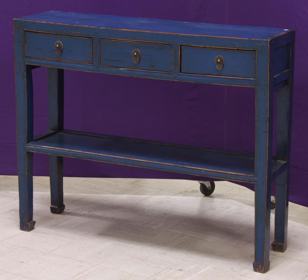 Oriental Blue Painted 3 Drawer Side Table