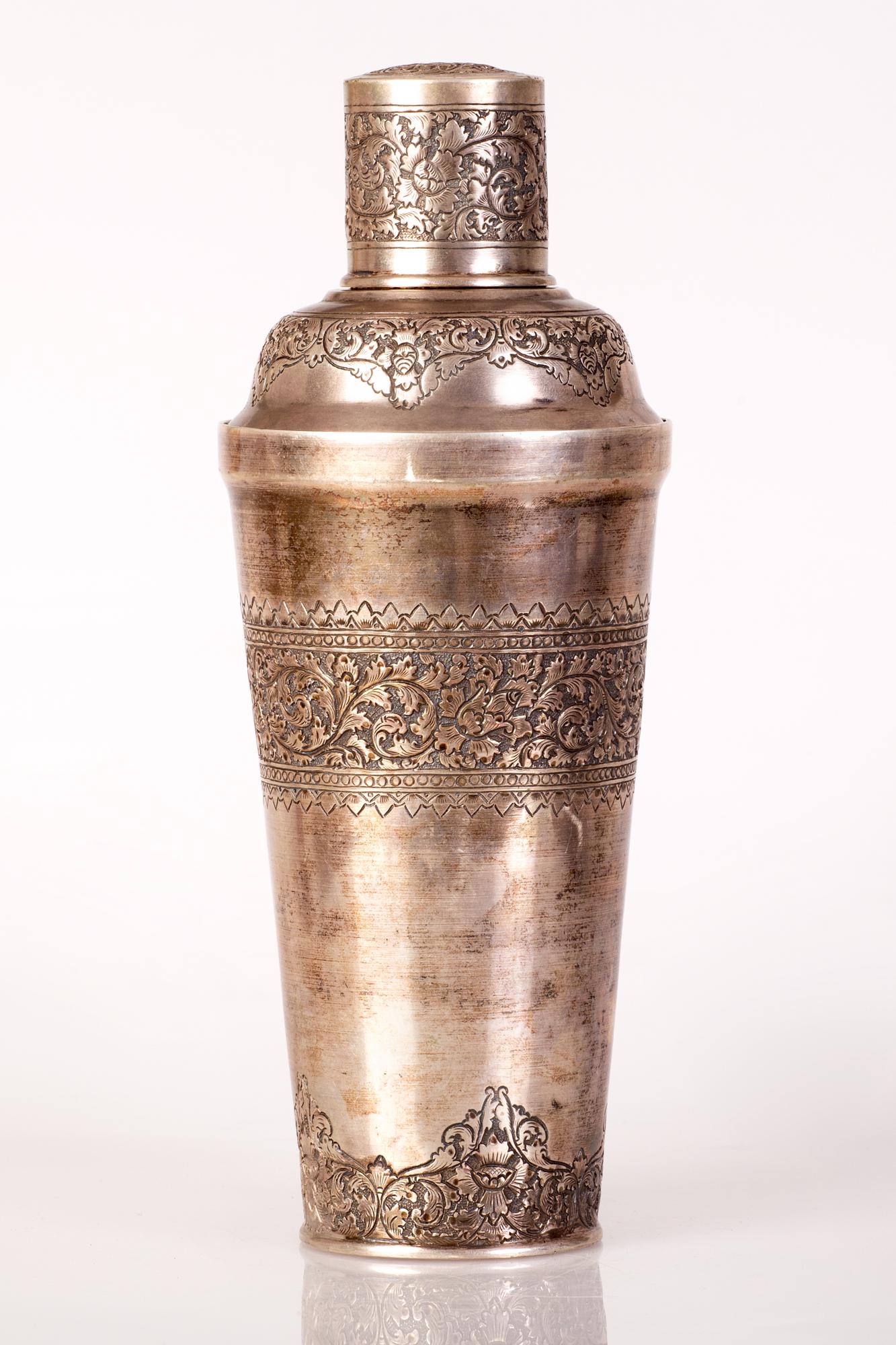 Oriental Design Silver Cocktail Shaker