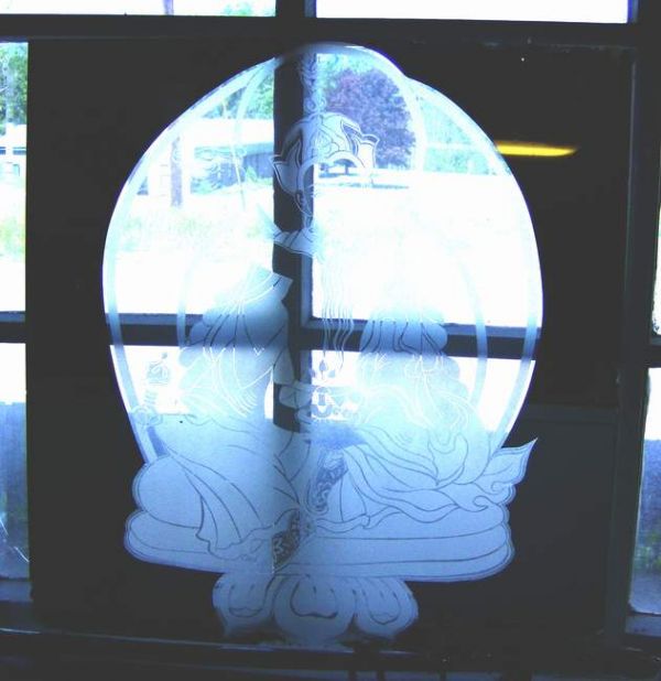 Oriental etched glass mirror