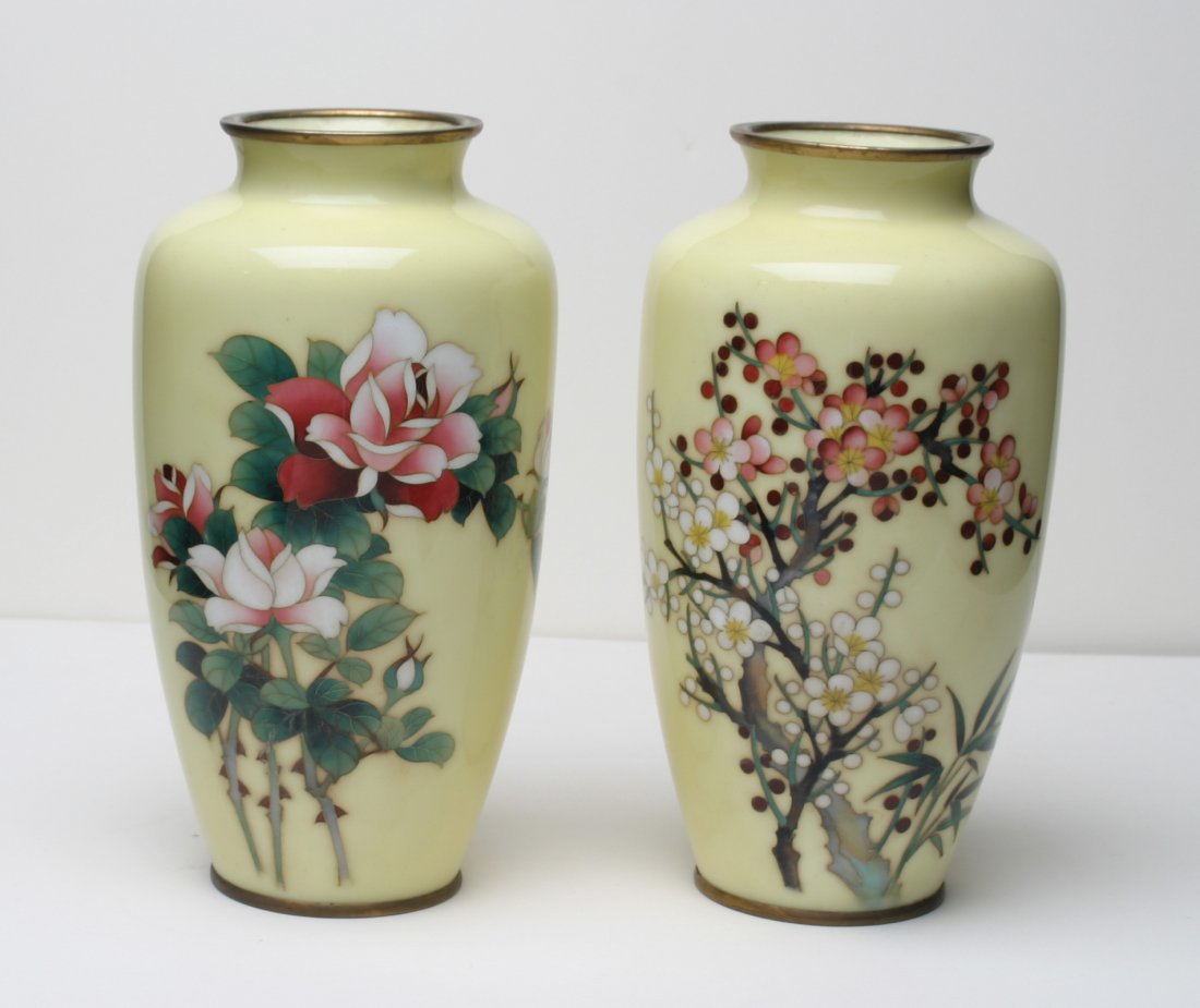 Oriental Ginbari Cloissone Vases, Pair.