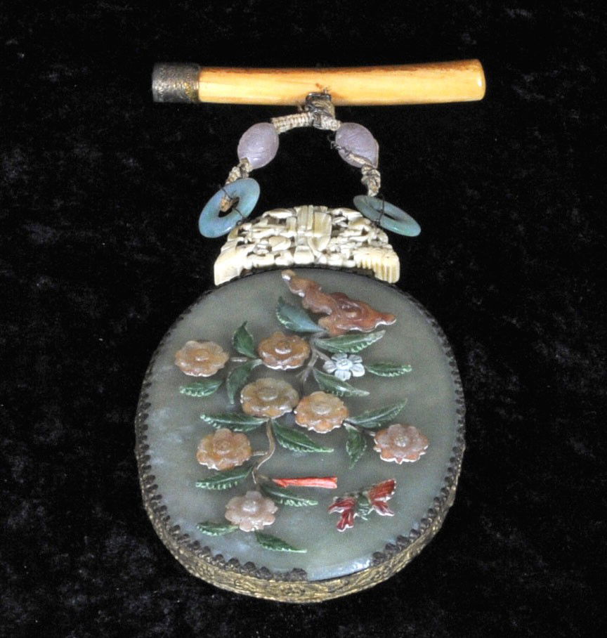 ORIENTAL HANGING HARDSTONE HAND MIRROR. HARDSTONE