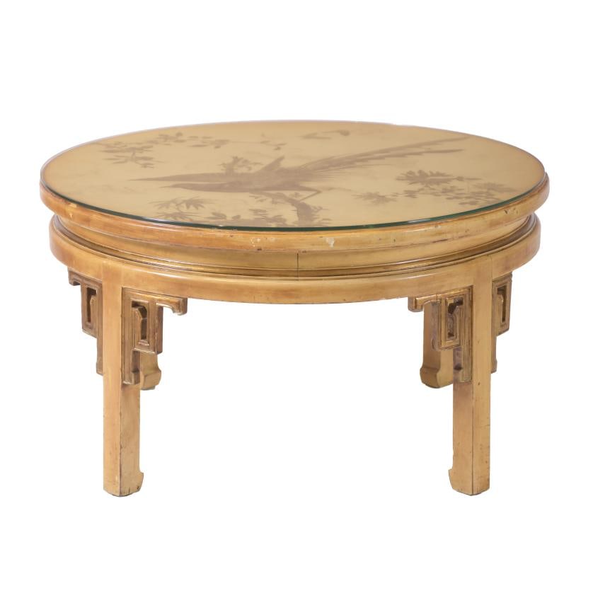 ORIENTAL-LIKE STYLE CIRCULAR COFFEE TABLE, CIRCA 1960.