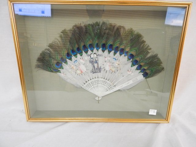 ORIENTAL PAINTED BONE PEACOCK FEATHER FAN