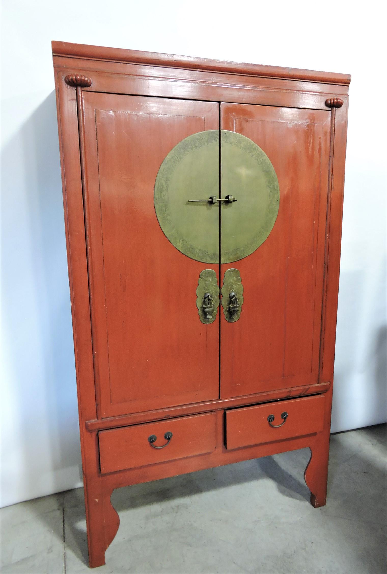 CHINESE RED LACQUER WEDDING CABINET W/ EXPORT SEAL