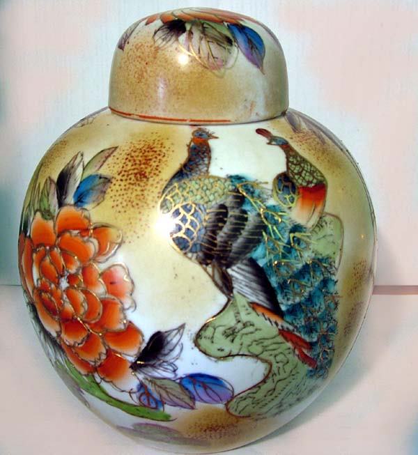 SoldOriental Lidded Ginger Jar W Floral DesignOriental Lidded Ginger Jar W Floral Design. Oriental, Asian style beige toned ceramic porcelain ginger jar with intricate flowering branch with sitting bird design. Asian, orientalia, Lidded Vessel, USee Sold Price
