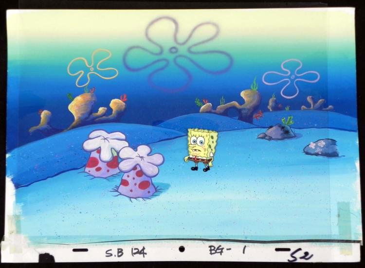 Orig SpongeBob Animation Cel, Background Nervous Stroll