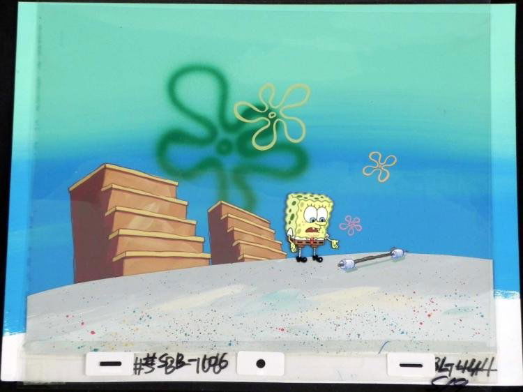 Orig SpongeBob Production Cel & Background Barbells