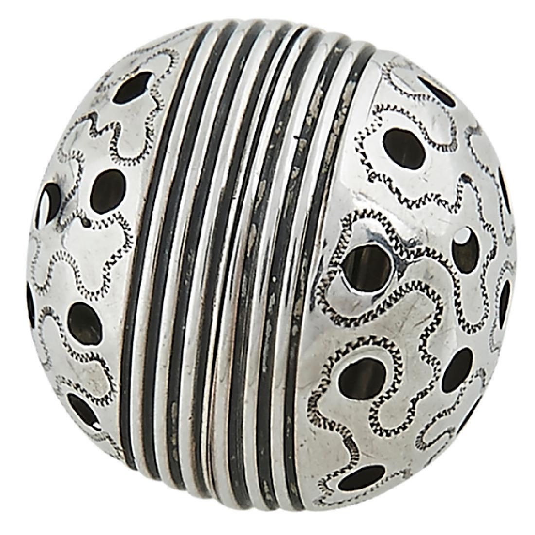 AN OTTOMAN BALL SHAPED SILVER CONTAINER, 19TH CENTURY