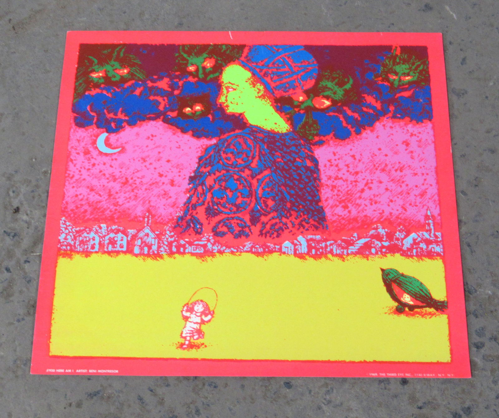 Original 1969 Third Eye Blacklight Poster, "Here Am I"