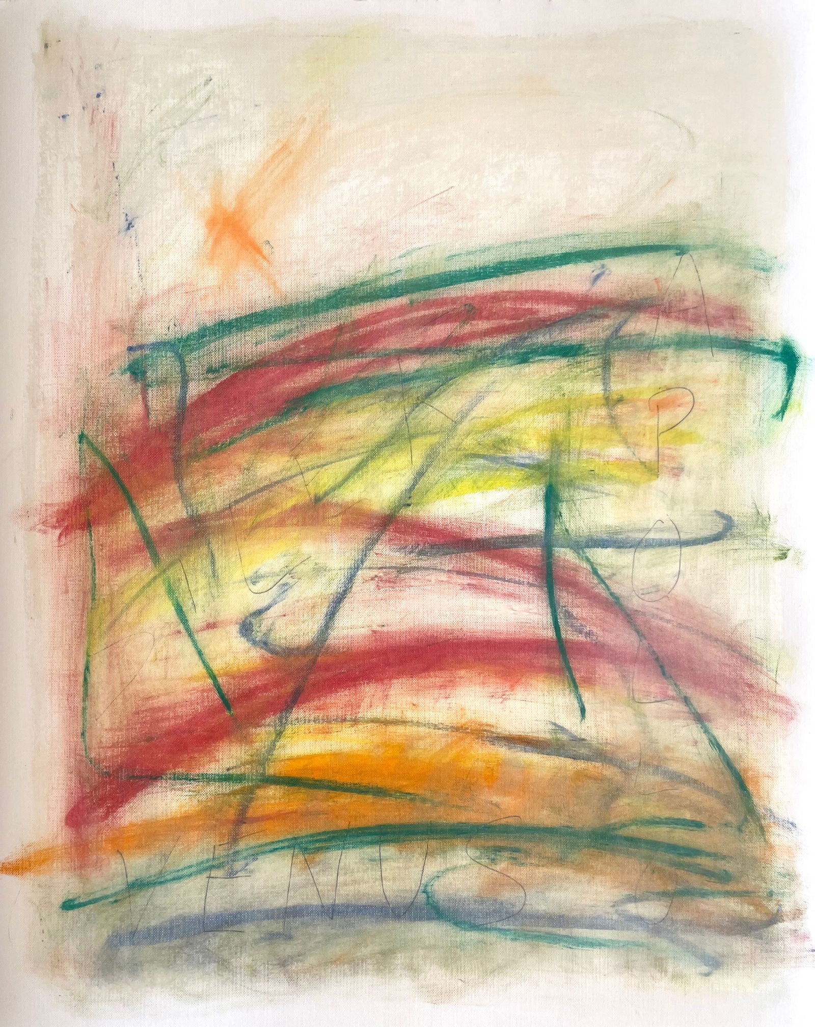 LARGE ABSTRACT AMERICAN OIL PASTEL ON PAPER PAINTING