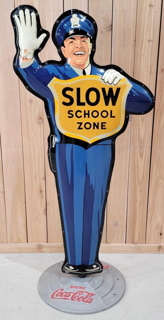2) Vintage DST "No Parking Between Signs" Curb SignsFeb 01, 2026COCA-COLA "SLOW SCHOOL ZONE" TIN POLICE OFFICER SIGN ON COCA COLA BASE.Feb 17, 2026Vintage DSP Coca-Cola Lollipop Curb Sign w/ 2 Button Signs & Cast Iron Coca-Cola BaseFeb 01, 2026Vintage SSP Chicago Motor Club School Drive Slow SignFeb 01, 2026You Are Entering The Stoll Golden Tip Area w/Logo Porcelain Sign (TAC)Feb 06, 2026Exceptional Hood Tire Dealer Man Die Cut 36" Single Sided Porcelain Curved Sign w/ FlagJan 31, 2026GE Light Bulbs Police Man Light Up Display "Keep Spares"3 days LeftAuthorized Hood Dealer w/Attendant Metal Sign (TAC)Feb 05, 2026Veedol Motor Oils "100% Pennsylvania" Metal Sign (TAC)Feb 05, 2026Standard Ethyl Gasoline w/Logo Porcelain Curb Sign (TAC)Feb 05, 2026Standard in Bar & Circle No Smoking Porcelain Sign (TAC)Feb 05, 2026Signal Gas w/Black Spotlight Logo Porcelain Sign (45") (TAC)Feb 06, 2026Salesman Sample Metal Thermometer in Carrying Case "Don't Take Chances-Drive Safely" (TAC)Feb 06, 2026Golden Shell Motor Oil Porcelain Sign (TAC)Feb 05, 2026Marbelite Stoplight Traffic Signal On Custom BaseFeb 01, 2026Union Gasoline Speed & Power Die Cut Double Sided Porcelain Sign "Union Oil Company of California"Jan 30, 2026