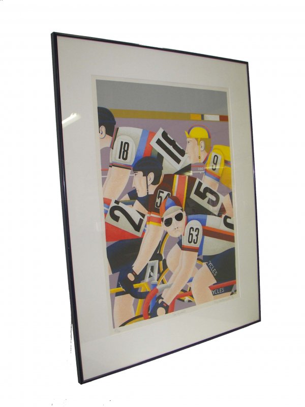 Original framed bicyclists signed and numbered