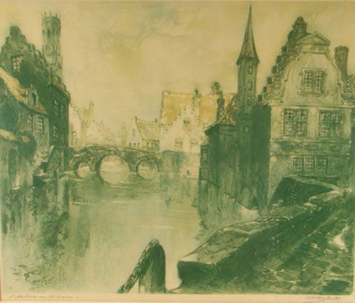 Original Pencil Signed Lithograph, Belgian Bruges