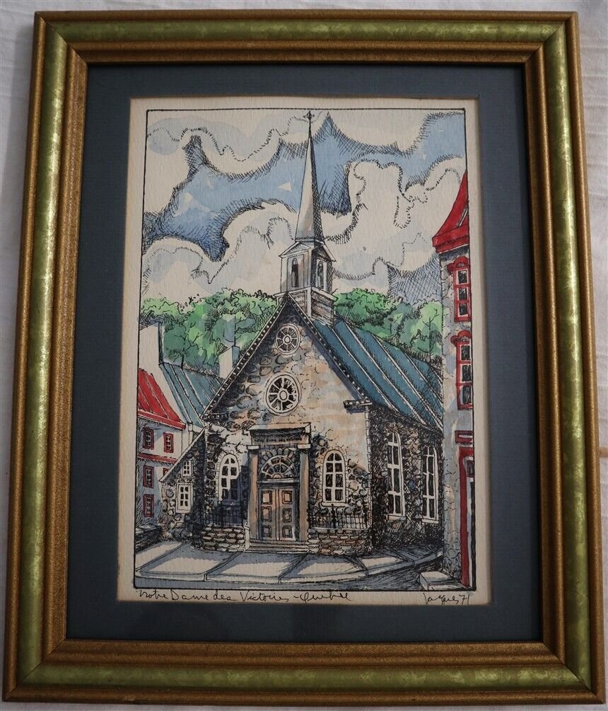 Original Signed w/colour Quebec Notre Dame Framed