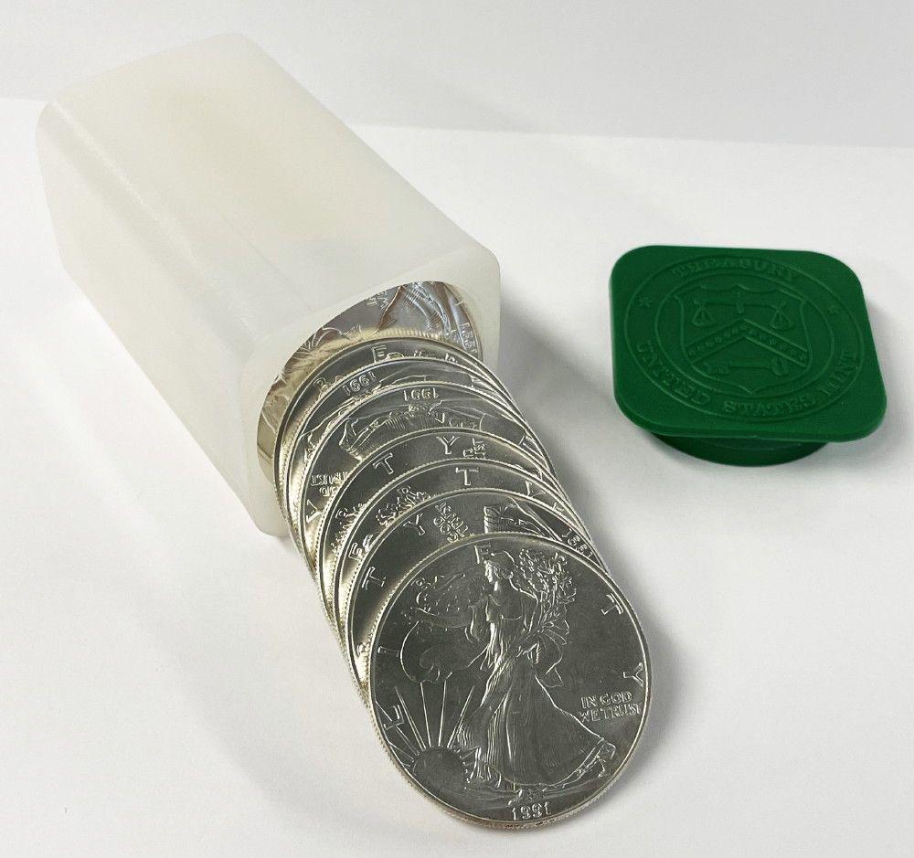 Sold1991 Silver Eagle Full Roll 20 CoinsListed is a full roll of 1991 Silver Eagle 1oz Silver Coins along with a mint tube to keep them in.See Sold Price