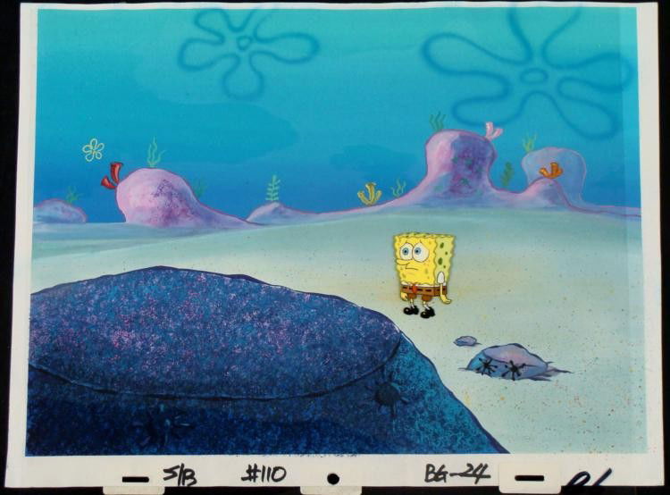 Original SpongeBob Animation Cel & Background Wandering