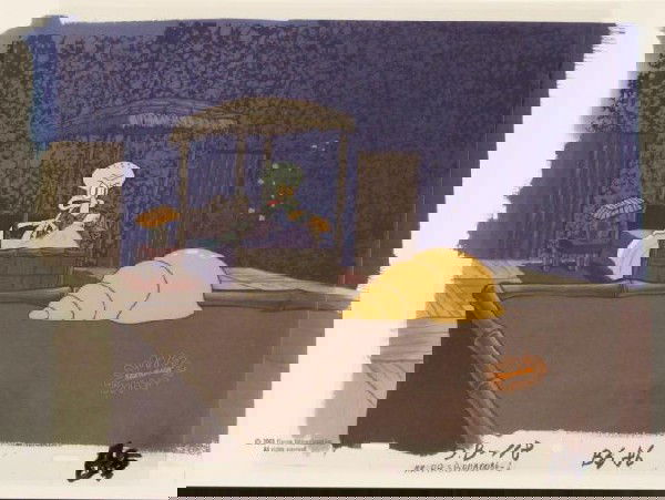 Leonardo & Donatello of (TMNT) Turtles- Original Production Cel -MASTER Hand-Painted Background withAn original Teenage Mutant Ninja Turtle production cel with MASTER hand-painted background and MWS Seal. This cel depict frames from a scene in a Teenage Mutant Ninja Turtles cartoon episode. These fr