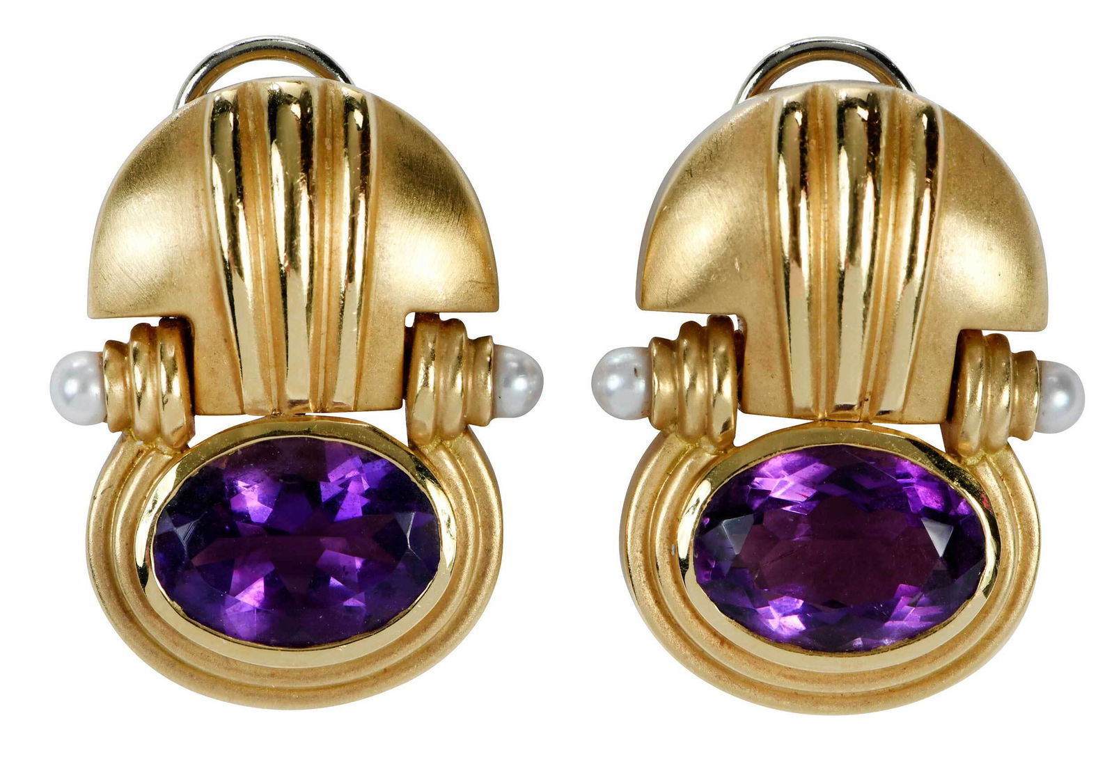 14 kt. Yellow gold, Antique Diamond and Regal Amethyst Oval Earrings in 14K Gold AmethystEastern European Art Gallery Inc$5006 days Left