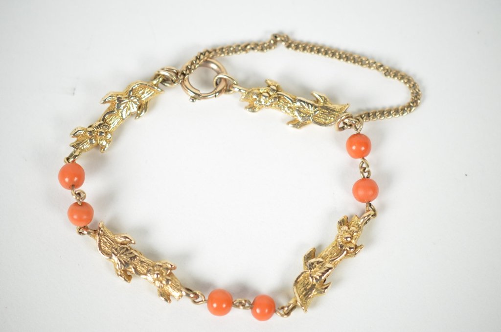 Vintage 14K Gold pink bead Bracelet sz 7"