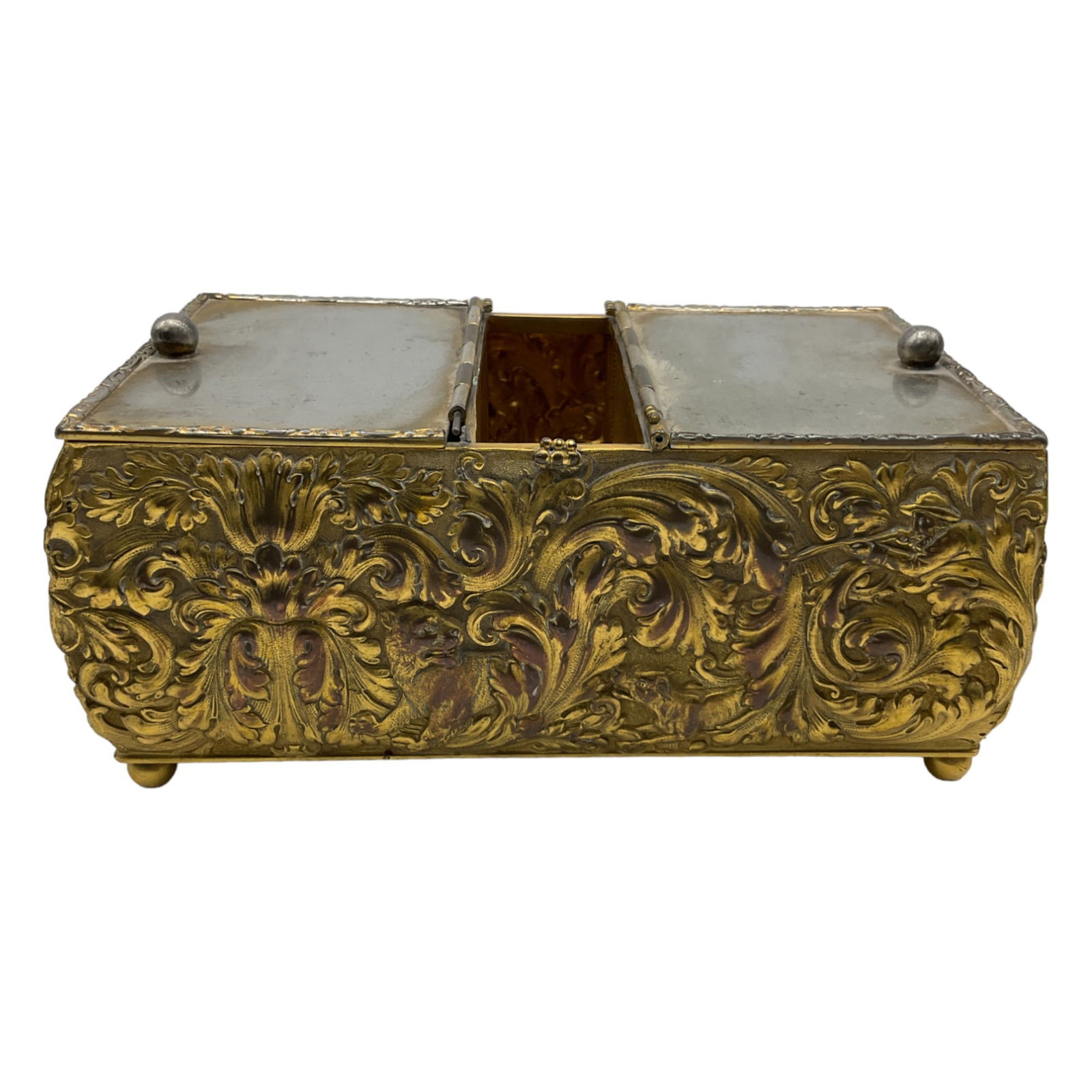 Lot of 2 antique ornate Asian lidded brass containersMar 02, 202619TH C. ORMOLU MOUNTED BOULLE INKWELL10 hrs LeftTiffany Studios New York Venetian Bronze Double InkwellFeb 17, 202619th C. French Bronze Engraved Figural Box5 days Left‹Early 20th Century Art Nouveau Brass Jewelry Box Attributed Erhard & Sohne Germany19th Century French Bronze Jewelry Box Signed DEPOSED 4254 days Left19th C. Fine French Figural Bronze Mounted Jewelry5 days LeftA GILT BRONZE COVERED BOX WITH INTERLACED FLORAL DESIGNFeb 21, 2026A Large French Gilt Brass Floral Decorated Jewelry Casket Box, Circa 1900Feb 15, 2026ART NOUVEAU STYLE BRONZE PORTRAIT DOUBLE INKWELL BOXFeb 20, 2026A GILT BRONZE COVERED BOX WITH FLORAL DESIGNFeb 21, 2026Antique French Bronze With A Painting Jewelry BoxFeb 26, 2026A GILDED BRONZE MULTI-TIERED LIDDED BOX WITH BLESSINGS AND LONGEVITY MOTIFSFeb 21, 202619th Century French Gilt Bronze Hinged Jewelry Box2 days LeftMagnificent Russian Malachite & Bronze Jewelry Box, 19th C.5 days LeftAntique Art Nouveau Bronze & Leather BoxFeb 18, 2026