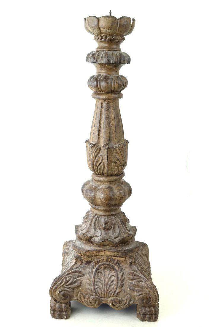 SoldANTIQUE CARVED WOOD PRICKET STICKANTIQUE CARVED WOOD CONTINENTAL GILT DECORATED FIGURAL PRICKET STICK, SOME LOSS, APPROXIMATELY 12 IN X IN X 34 IN HIGHSee Sold Price