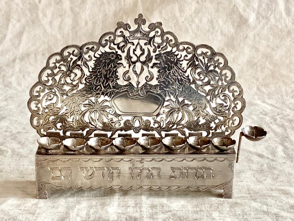 Ornate silver Chanukah menorah