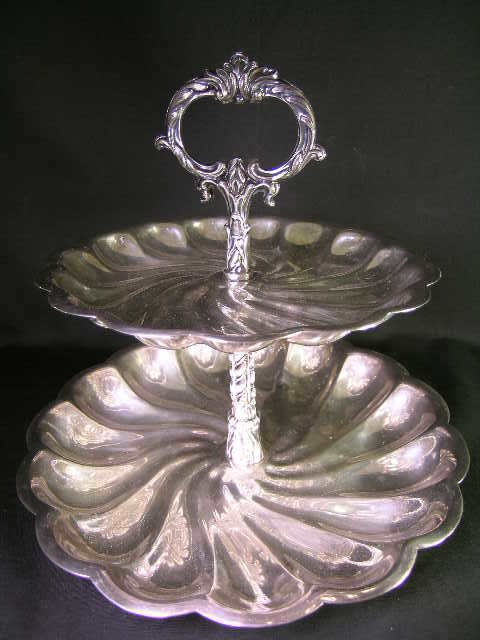 ORNATE SILVER PLATED TWO TIERED DESSERT STAND