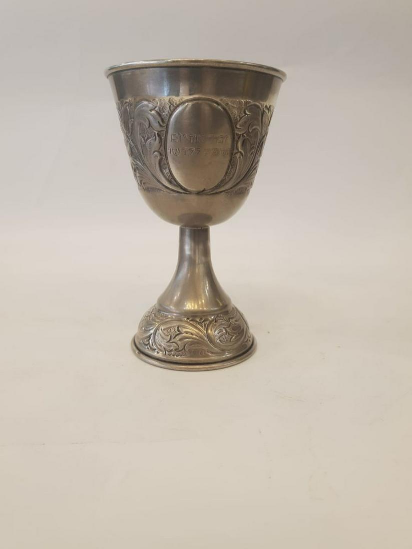 Ornate silver stemmed kiddush cup. Poland