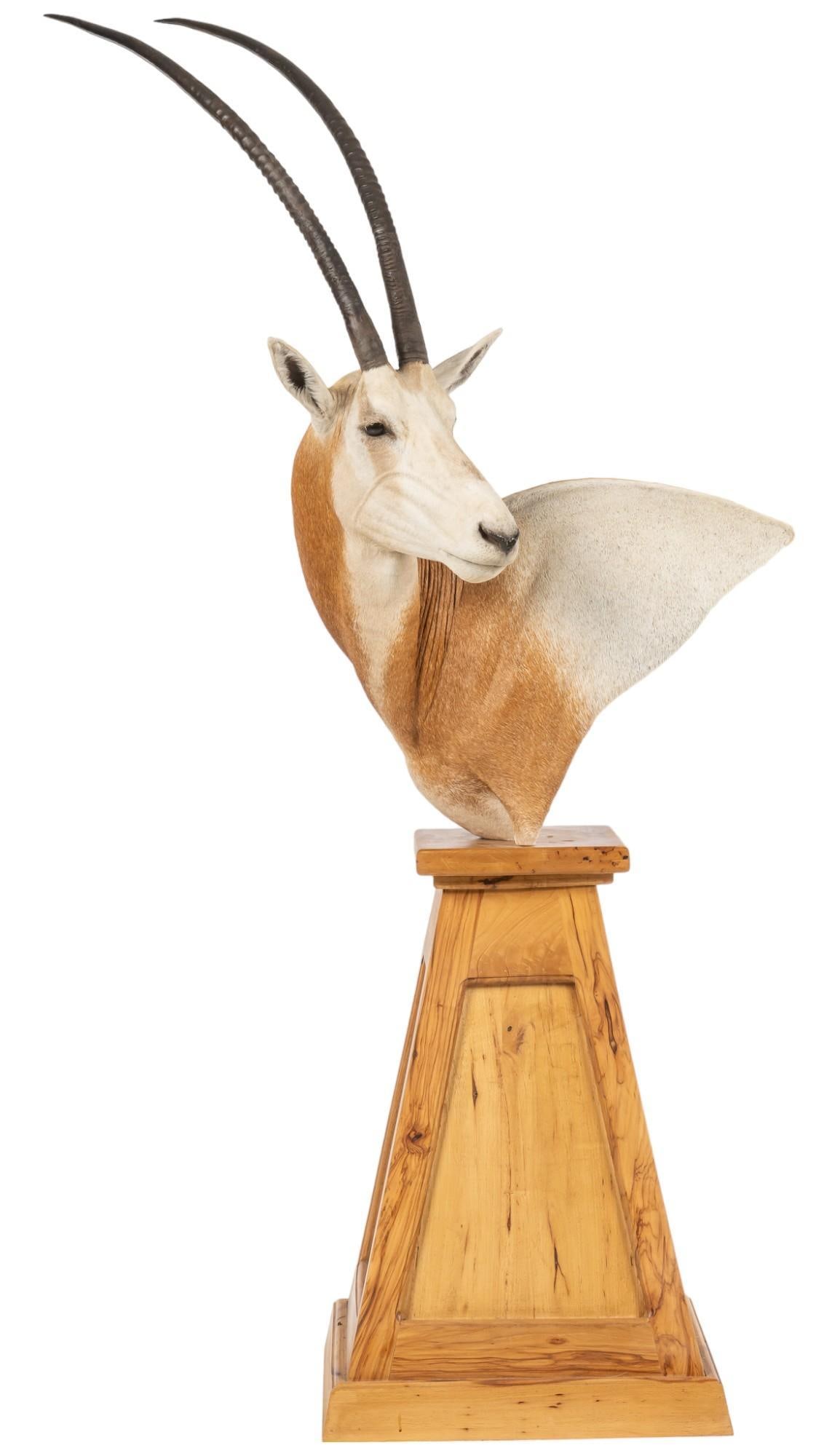 SoldScimitar Oryx Shoulder Mount TaxidermyScimitar Oryx shoulder mount height 44 in. x width 40 in. x depth 24 in. Provenance: Property from the collection of a Hondo, Texas lady Shipping available for this lot through our partner 4CL; pleSee Sold Price