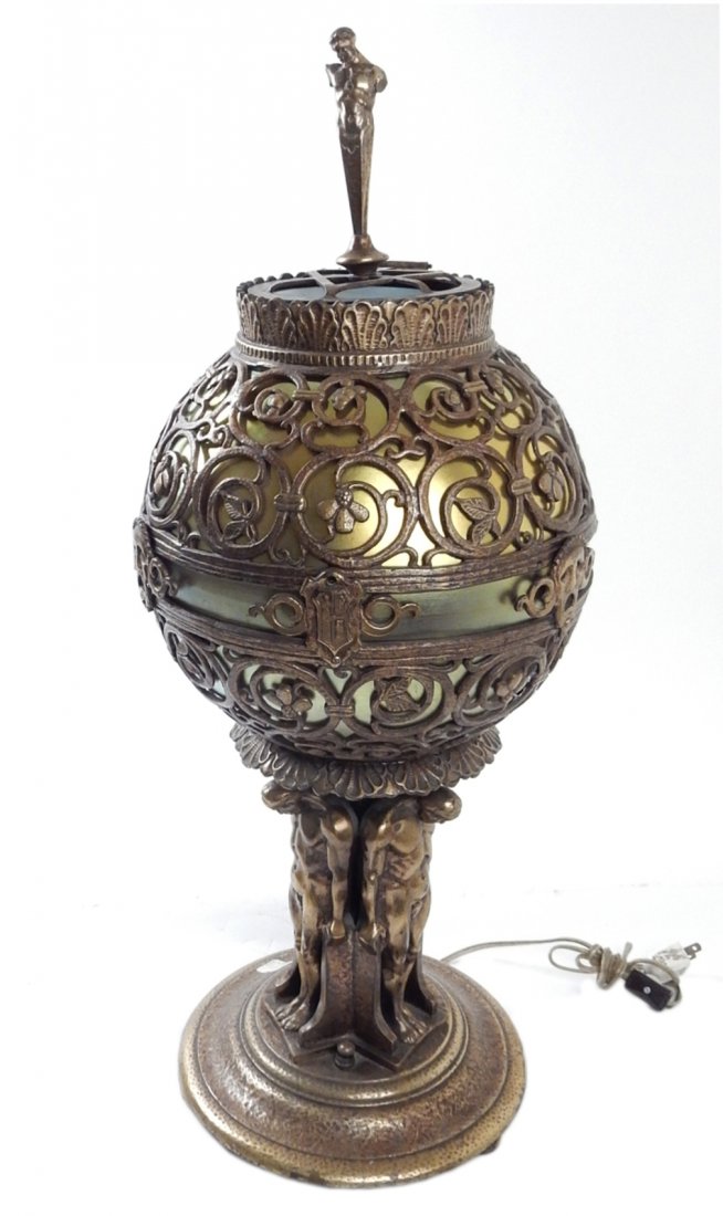 Bulbous Silvered Glass Table Lamp. Mercury Glass. Filigree Carved Top Trim.Uniques and Antiques, Inc.4.7(865)$504 days Left