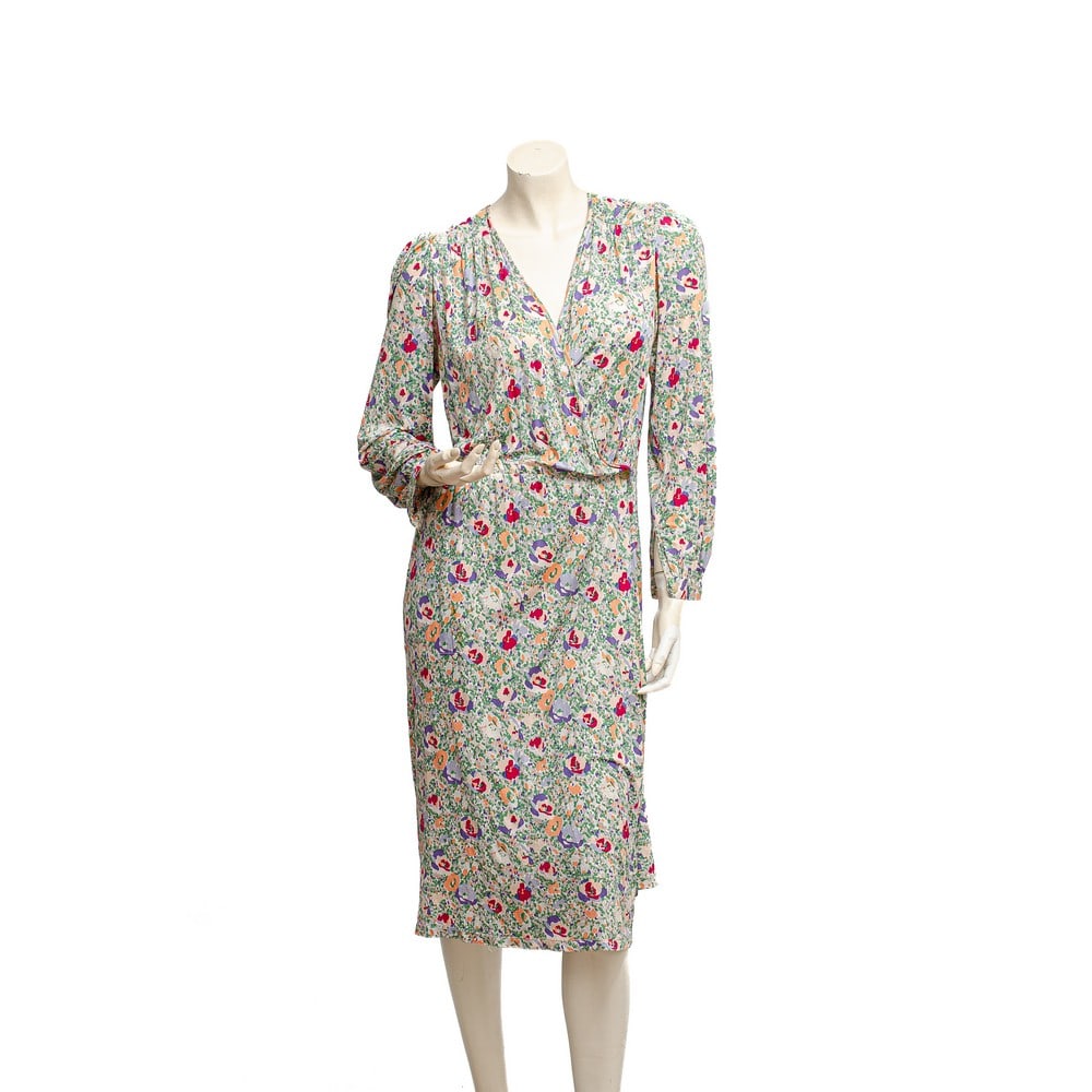 SoldFRANK USHER, Abito lungoFRANK USHER Produzione Inghilterra 1990 ca. Abito lungo doppio petto smanicato in crêpe di lana, chiusura laterale, bottoni in seta, collo in seta nera. Etichetta di produzione. Taglia 44.See Sold Price