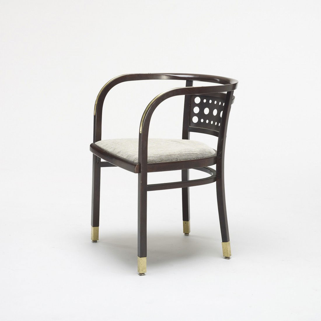 SoldOtto Wagner, 'Postsparkasse Vienna' Armchairs (2)OTTO WAGNERPair of 'Postsparkasse Vienna' armchairs, ca. 1905Ebonized bentwood, fabric. Designed for the Osterreichische Postsparkasse, Vienna, and produced by Gebruder Thonet, Vienna, AustriaSee Sold Price