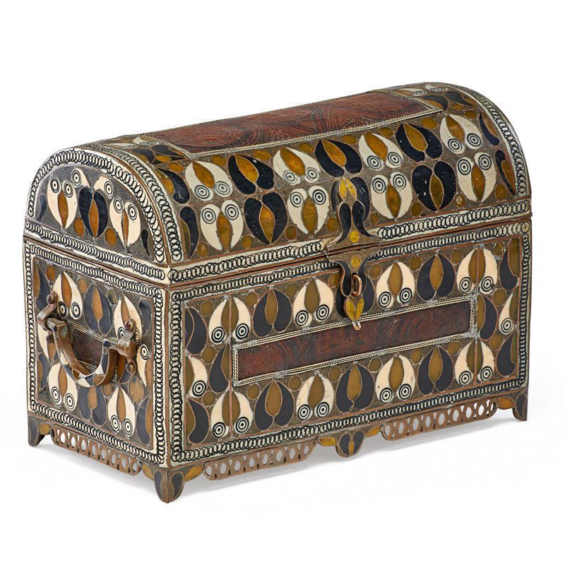 Small Spanish Baroque Iron-Mounted Walnut Intarsia and Bone Inlaid ChestFeb 26, 2026MOORISH STYLE SHELL & BONE INLAID TABLE BOX7 days LeftA Chinese Wood & Leather TrunkFeb 27, 2026Henri II Carved Walnut Domed ChestFeb 26, 2026Indian Brass Mounted Carved Wood ChestMar 26, 2026A Charles II style iron mounted brass studded leather covered trunk, antique and later elementsFeb 25, 2026Maitland Smith Tessellated Jewelry BoxFeb 27, 2026MOORISH STYLE SHELL INLAID CABINET ON STAND7 days LeftMaitland Smith Leather Chest with Marble Top and Brass Trim3 days LeftMarquetry Inlaid Mahogany with Inlays Tea Caddy, Ca. 20th Cent., H 5.25" W 10" Depth 6"4 days LeftAntique Chinese Carved Camphor Wood Chest - #S4-F4 days Left19th century bronze sarcophagus form jewelry cask. Case with dark/black patina and gilt accents andMar 01, 2026AN INDIAN LACQUERED AND PAINTED WOODEN CASKET, LATE 18TH–EARLY 19TH CENTURY217 Lots AwayVintage Boho Ebony Mahogany Blanket Chest with Brass Hardware6 days LeftChinese Brass-Mounted Coromandel Lacquer Traveling BoxFeb 26, 2026Antique Chinese Lacquered Wood Box With Ceramic InlayFeb 22, 2026