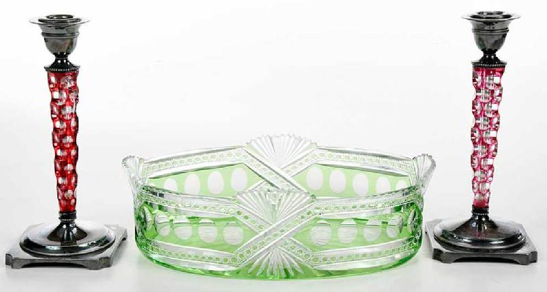Oval Cut Glass Bowl Pairpoint Candlesticks