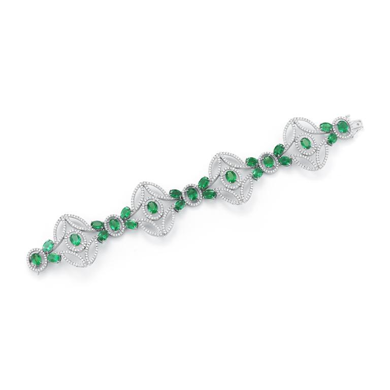 Oval Emerald and Diamond XOXO Link Bracelet 14k White Gold 7.00ctwPapps Family Liquidation4.3(381)$6002 days Left
