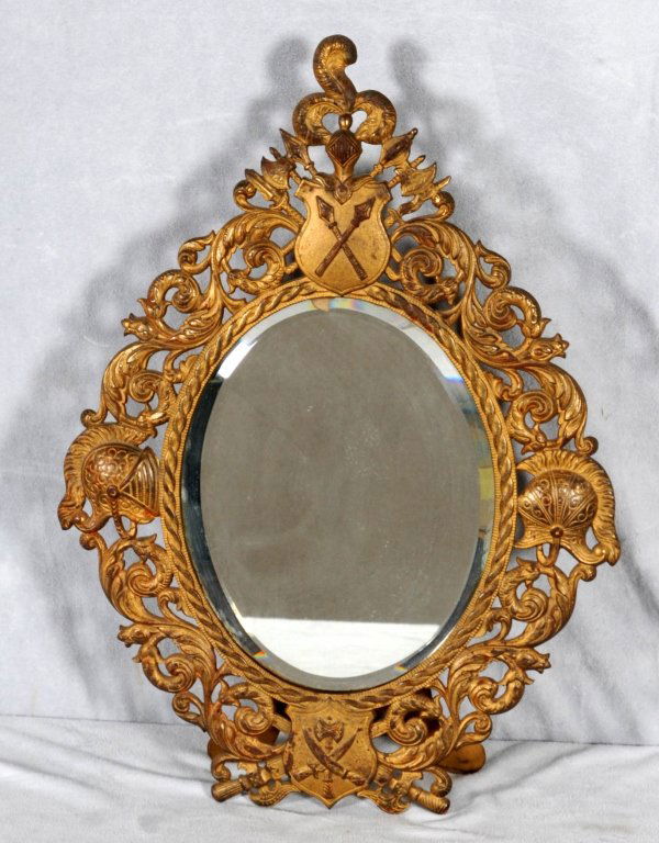 OVAL GILT METAL OPENWORK FRAMED TABLE MIRROR. A KNIGHT'